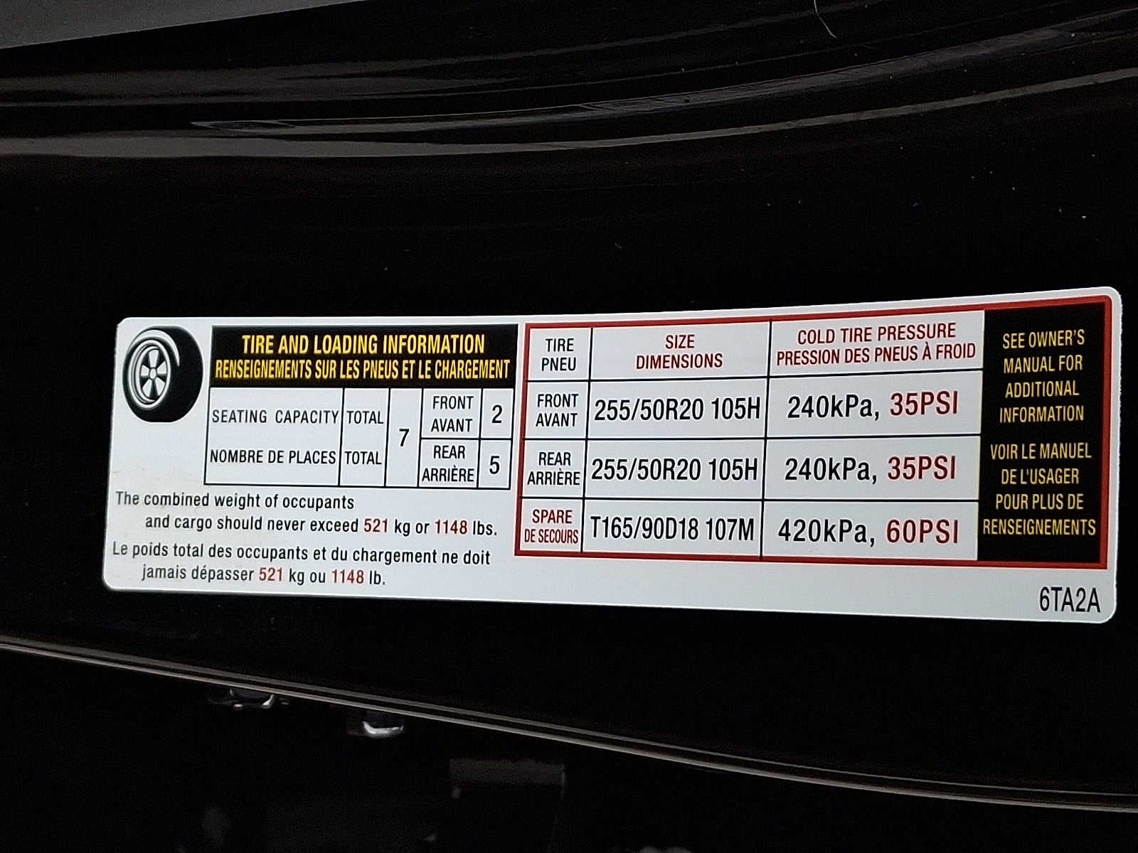 - Tires: 255/50R20 All-Season